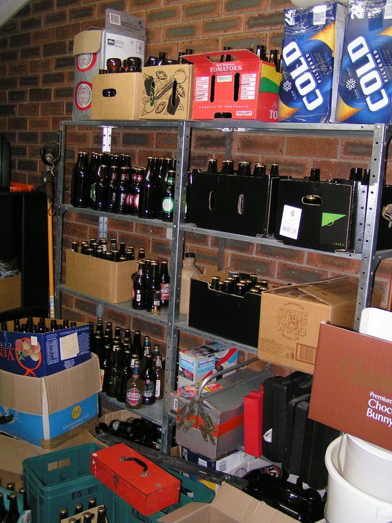 We moved house. One of the features of the new place is a small workshop, where as you can see Steve has got his priorities right with regard to its contents.